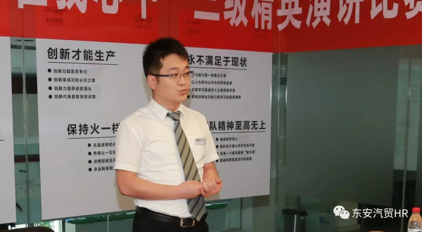 鄭州東錦店的銷售經(jīng)理邵明芳,圍繞汽車銷售分別從預(yù)算、廠家指標(biāo)等方面進(jìn)行了演講,他的演講條理清晰、切合實(shí)際,得到了評(píng)委們的一致肯定;新鄭寶馬店的電銷顧問(wèn)鄭新蕾,演講風(fēng)格清新、形式新穎,不時(shí)與臺(tái)下評(píng)委互動(dòng),調(diào)動(dòng)了整場(chǎng)比賽的氛圍。在這些選手當(dāng)中,絕大多數(shù)對(duì)于本次比賽高度重視。例如新鄉(xiāng)哈弗店的售后經(jīng)理李東亮,為了不影響白天的正常工作和晚上家人的休息,專門在賽前把自己關(guān)到賓館,伏案準(zhǔn)備到天亮,第二天正常到公司上班,一連三四天獨(dú)自一人在賓館反復(fù)背誦練習(xí)。他對(duì)工作的熱情和執(zhí)著地體現(xiàn)在了新鄉(xiāng)站的比賽當(dāng)中。由于準(zhǔn)備充分,李經(jīng)理現(xiàn)場(chǎng)演講效果佳,內(nèi)容深刻,而且感染力強(qiáng),一舉贏得了當(dāng)場(chǎng)比賽的高。